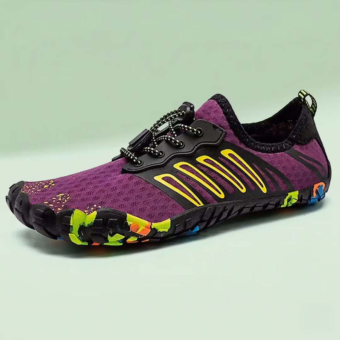 Barfotskoene har en såle som er tynn og flat, men samtidig slitesterk. Det gir føttene dine muligheten til å aktivere muskler og sener på en naturlig måte. Når du bruker et par badesko, kan du ikke forvente å få samme støtte som i vanlige sko. Barfotsko mangler både polstring og støtdemping. Det gjør at det i starten kan føles litt uvant for føttene. Men ved å venne føttene til belastningen i et rolig tempo, vil føttene dine føles bedre enn noen gang!