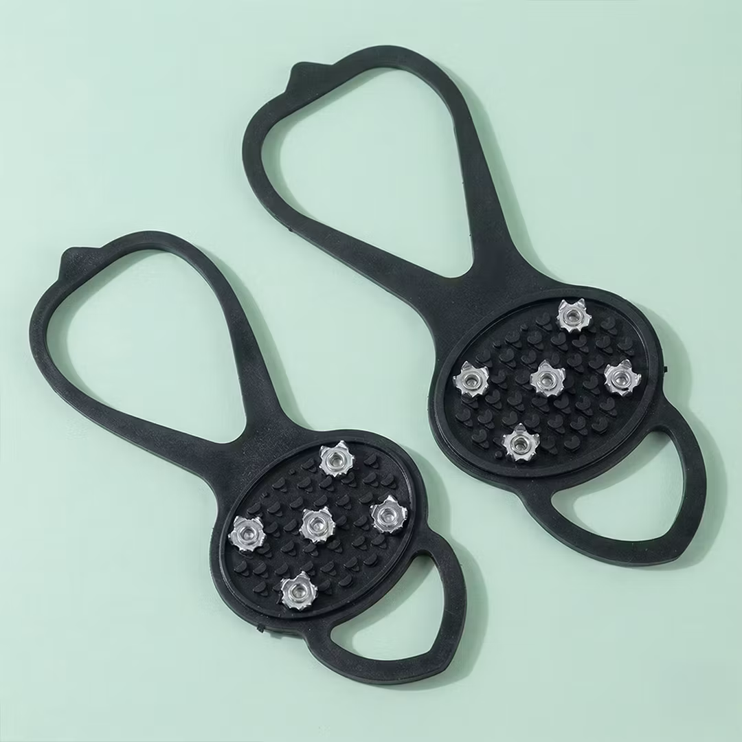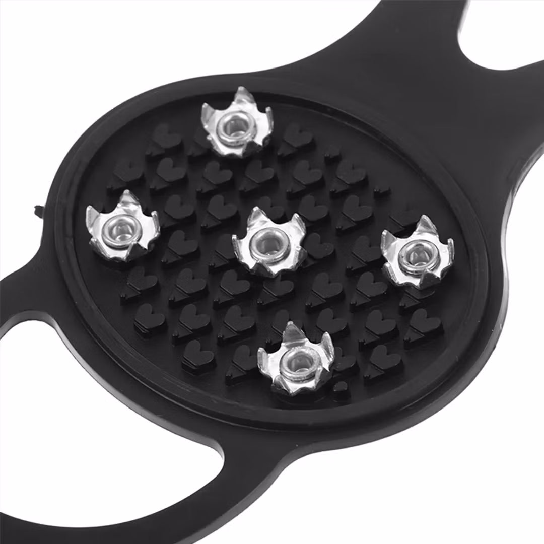 Du påfører ganske enkelt piggene på skoene dine ved å tre dem over skoene. Siden piggene er laget av et elastisk gummimateriale, er de strekkbare. De passer til de fleste skostørrelser.