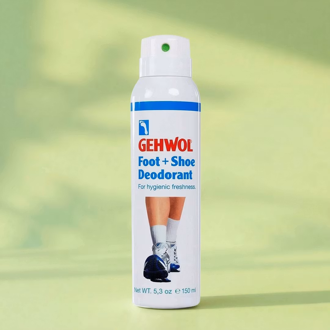 Svette i seg selv lukter ingenting, men når den kommer i kontakt med hudens bakterier og lukkes inne i et fuktig og varmt miljø, trives bakteriene og det oppstår ubehagelig lukt. Daglig bruk av Gehwol fot- og skodeodorant hjelper føttene dine med å holde seg tørre og luktfrie. Deodoranten inneholder svette- og lukthemmende stoffer som også forebygger soppinfeksjoner.