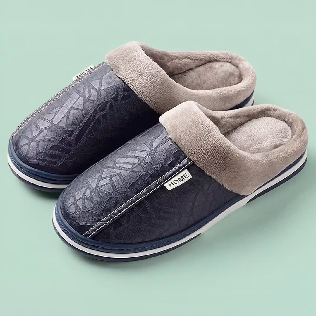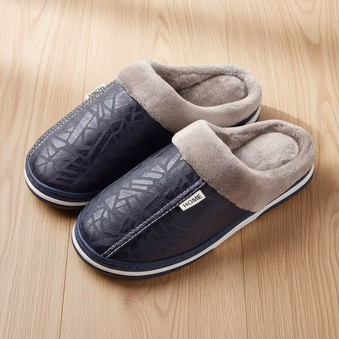 Et par stilige tøfler i lær med mykt fôr som er behagelige å ha på seg en kjølig morgen, kveld eller etter en dag utendørs..