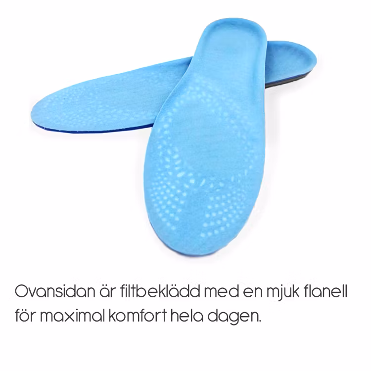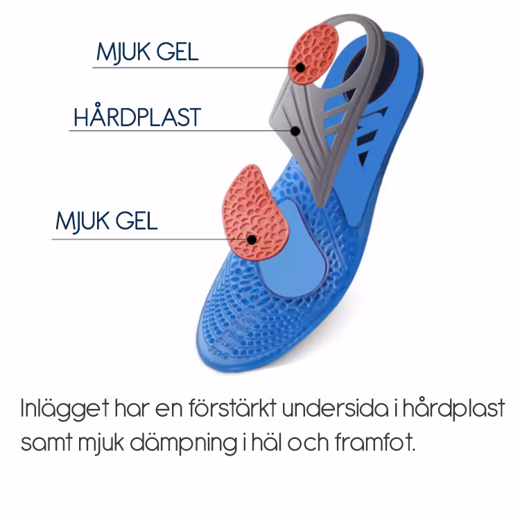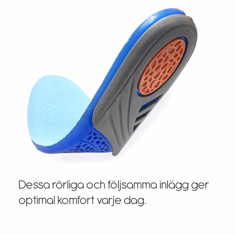 Disse sålene demper på en effektiv måte støtene du får i området forfot og hæl. Innleggssålene øker komforten og fleksibiliteten til fothvelvet, noe som har en positiv effekt på fotens naturlige gang og løpsdynamikk. Ved å bruke en innsats som avlaster, kan du lindre problem med ryggraden, knær og hofter.