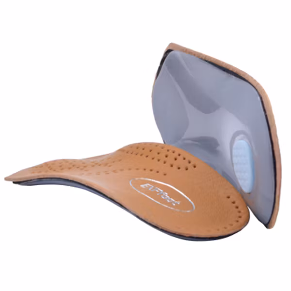 Et par ortopediske såler med støtte for fotbuen som avlaster fothvelvet og hælen. Halvsålene passer utmerket for deg med pronasjon, det gir en mer komfortabel støtte for fotbuen og har en støtdempende funksjon i sålen.