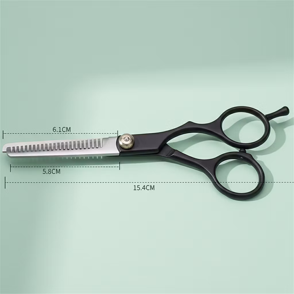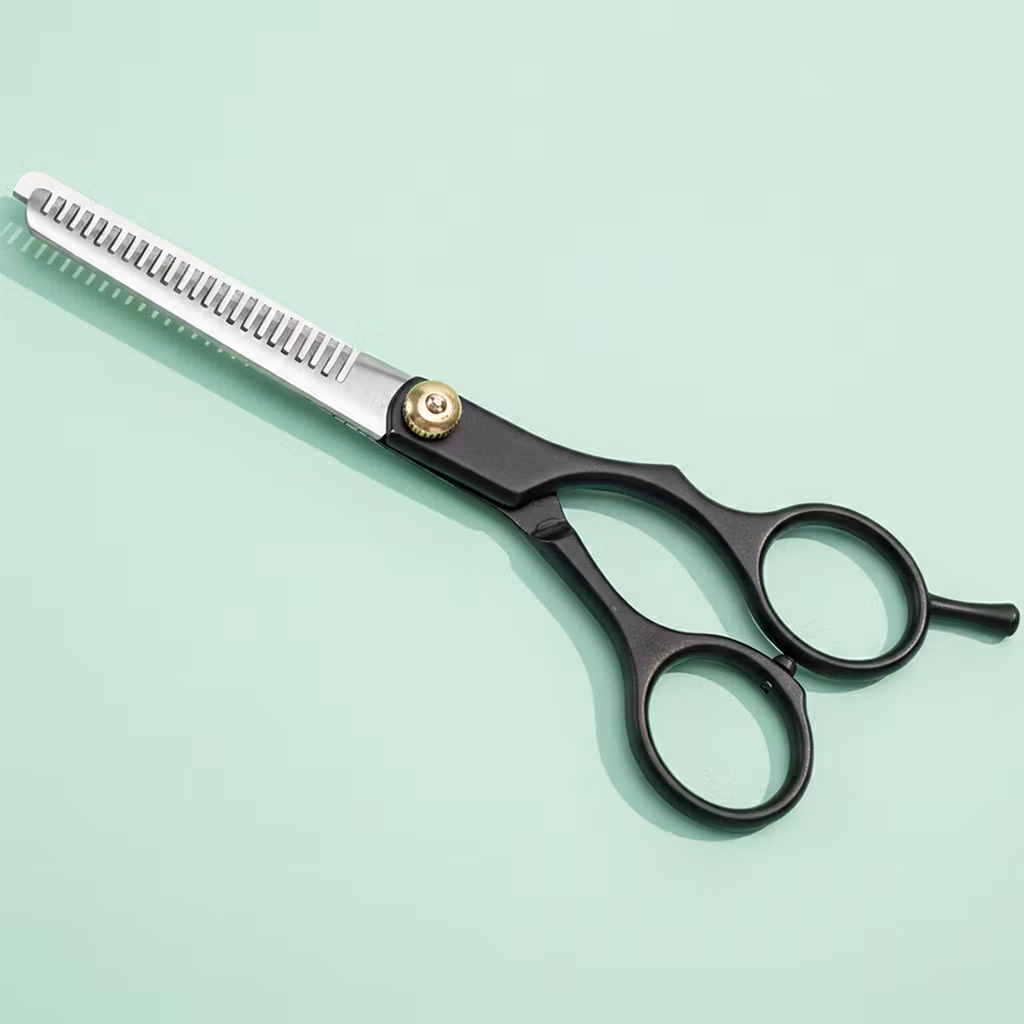 En frisørsaks som brukes til for å tynne ut håret når det er tykt eller for å få forskjellige lengder og skape volum – en fantastisk tynnende saks i høy kvalitet.