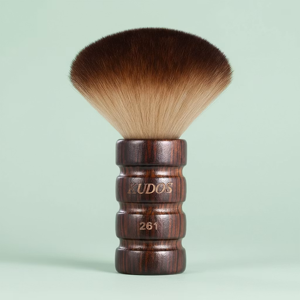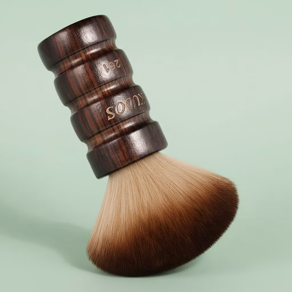 En frisørbørste til nakken i fantastisk kvalitet på både håndtak og børste, som hjelper deg å pusse bort håret som havner mellom frisørkappa og nakken når du klipper håret.