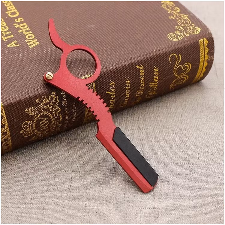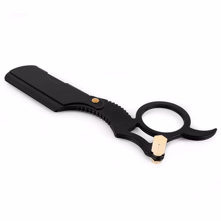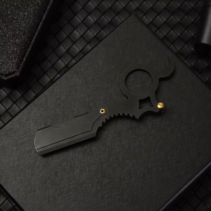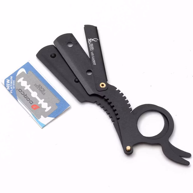En snygg och exklusiv rakkniv för barberare som du använder för att raka dig. Tio dubbelsidiga utbytbara blad i rostfritt stål medföljer.