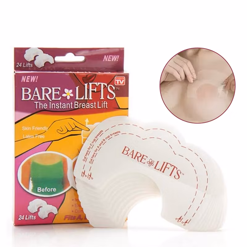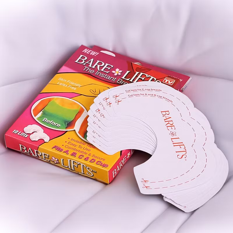Brysttapen fungerer som en bh uten stropper, som løfter brystene dine på en behagelig, elegant og effektiv måte. Den er enkel å bruke og gir et naturlig utseende. Vår brysttape er perfekt for deg som ikke vil at bh-en skal synes!