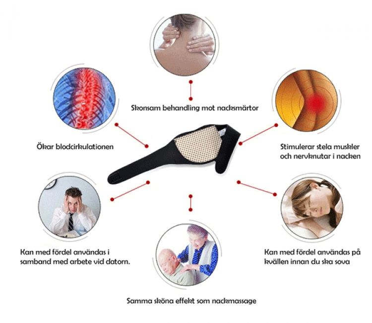 Nakkeputen varmer nakken ved hjelp av magnetisk terapi på bare 15 minutter - smerter og spenninger forsvinner, bra å ha om du har nakkeproblemer (for eksempel på grunn av stillesittende dager foran datamaskinen).