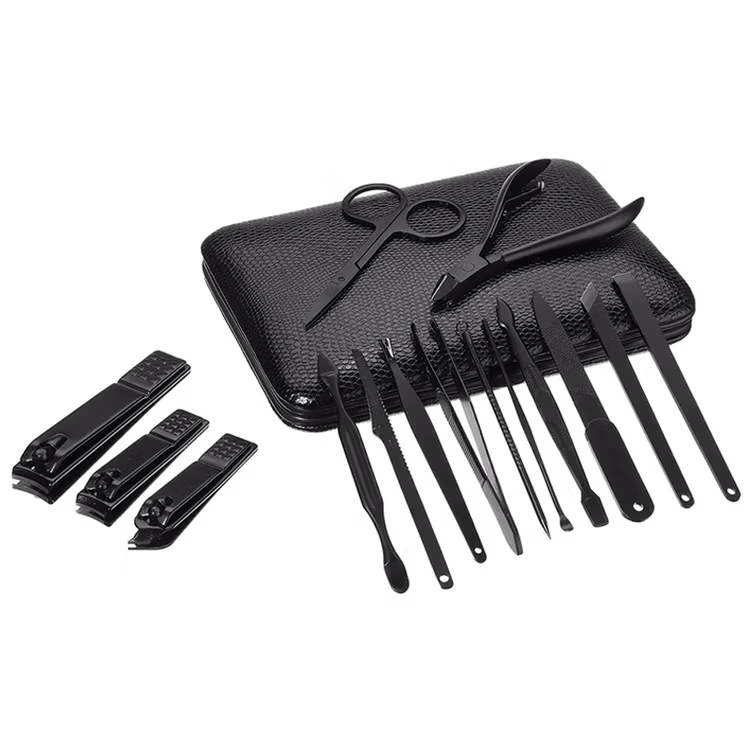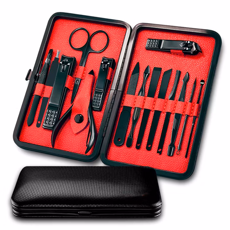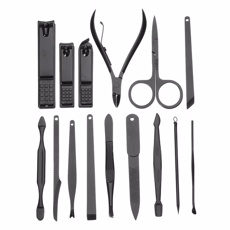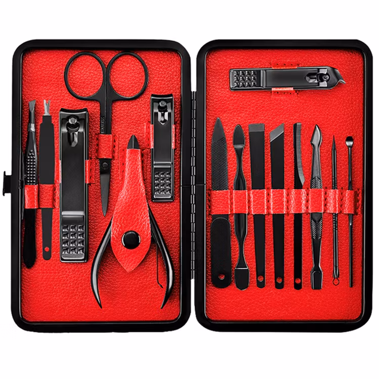 Et eksklusivt negl sett som inneholder femten forskjellige verktøy for å holde neglene i trim – neglesaks, pinsett, tang, filer, neglebåndsverktøy og negleklippere i fantastisk kvalitet.