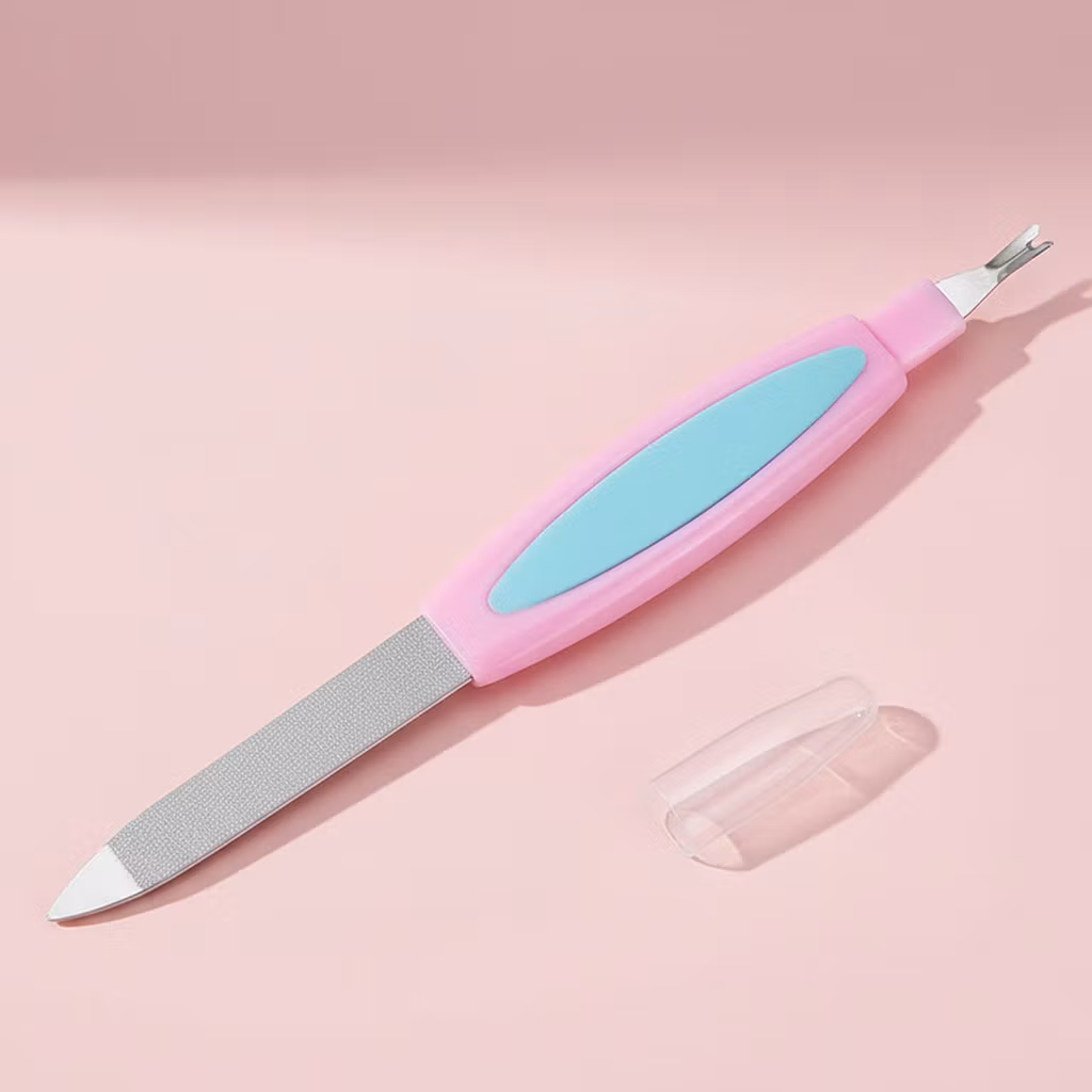 Med denne neglebåndskniven kan du stelle neglene dine uansett hvor du befinner deg. Dette praktiske verktøyet lar deg både file neglene og trimme neglebåndene i ett og samme steg. Siden verktøyet kun er 10 centimeter langt, tar det minimalt med plass i vesken eller toalettmappen.