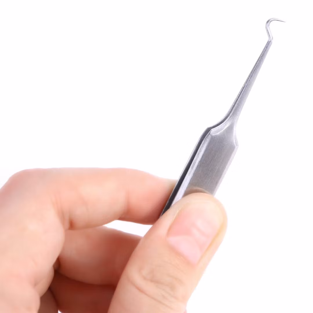 Med en hudormtang kan du enkelt fjerne hudormer fra huden. De to spissene på enden av hudormtangen gjør det lett å få grep på hudormene i ansiktet. Ved å sterilisere hudormtangen etter hver bruk, unngår du risikoen for at bakterier skal spre seg.
