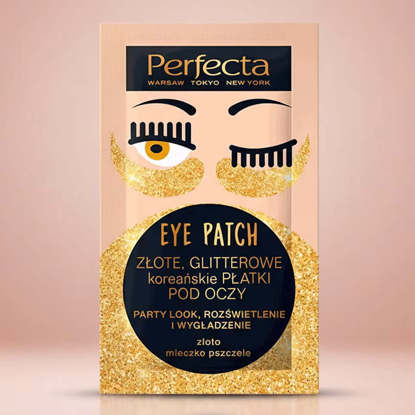 Oppfriskende øyeplaster med gullglitter