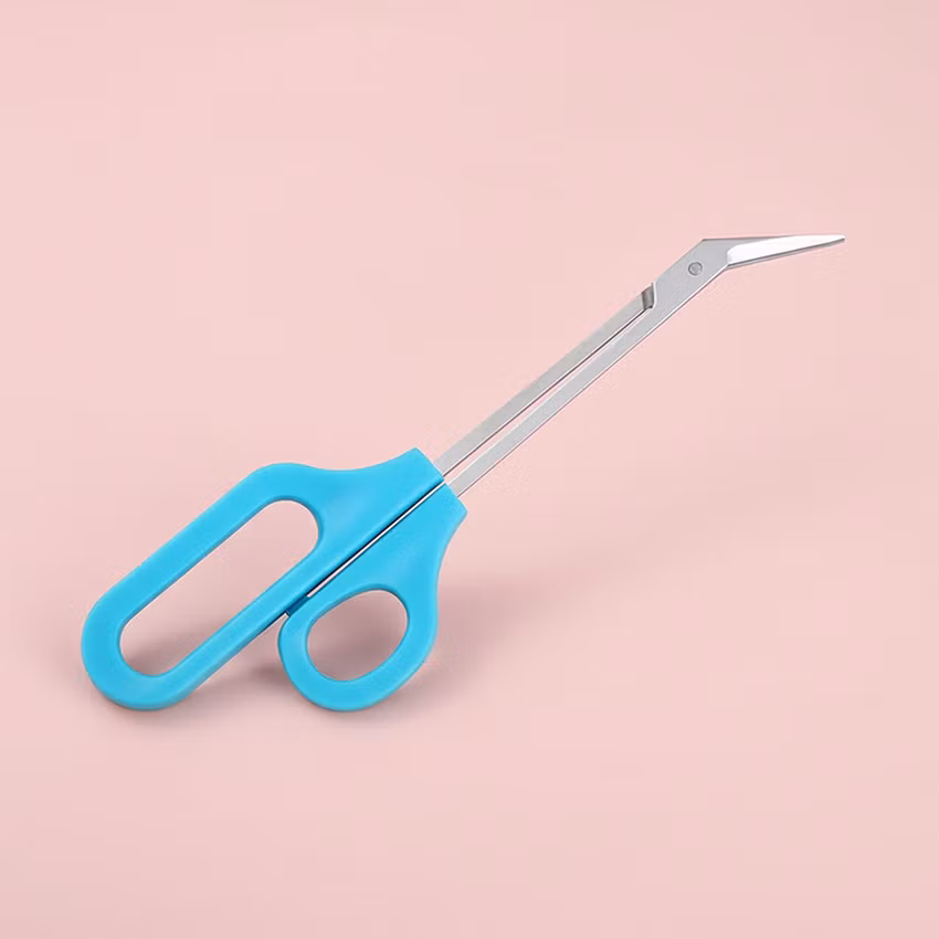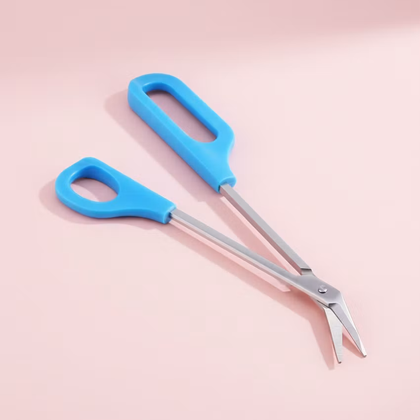En neglesaks med lang skaft som gjør det enkelt å klipp tåneglene. Neglesaksen har en forlengelse gom gir et stort og behagelig grep, der lillefingeren kan passe og gir mer kraft i selve klippingen. Saksens skaft er tjue centimeter lang.