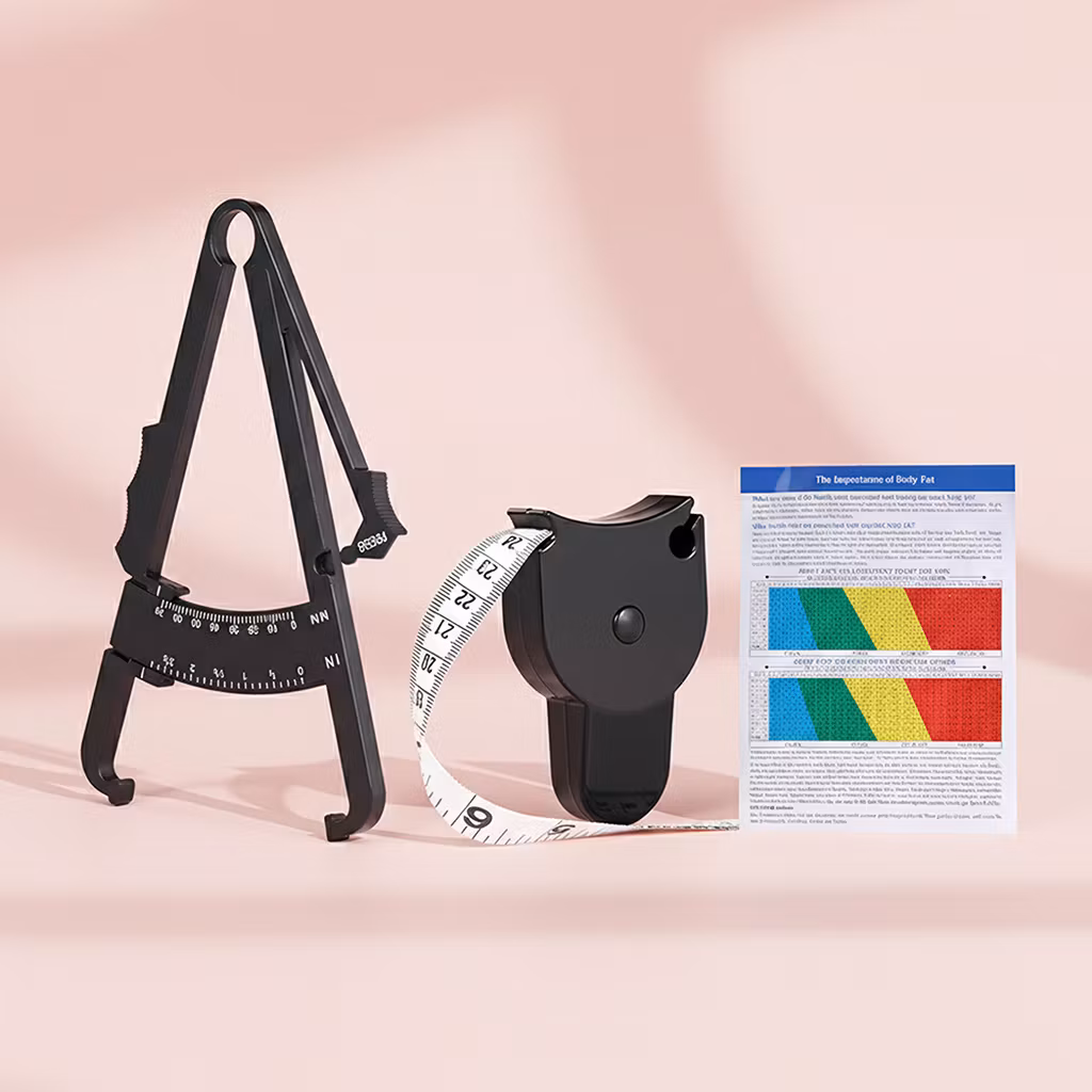 En fettmåler som gjør det enkelt å måle kroppsfettet i prosent – den inneholder en kaliper som der du på får en indikasjon på hvor høy fettprosent du har i kroppen din. Du får også et målebånd som du bruker til å måle midjen med.