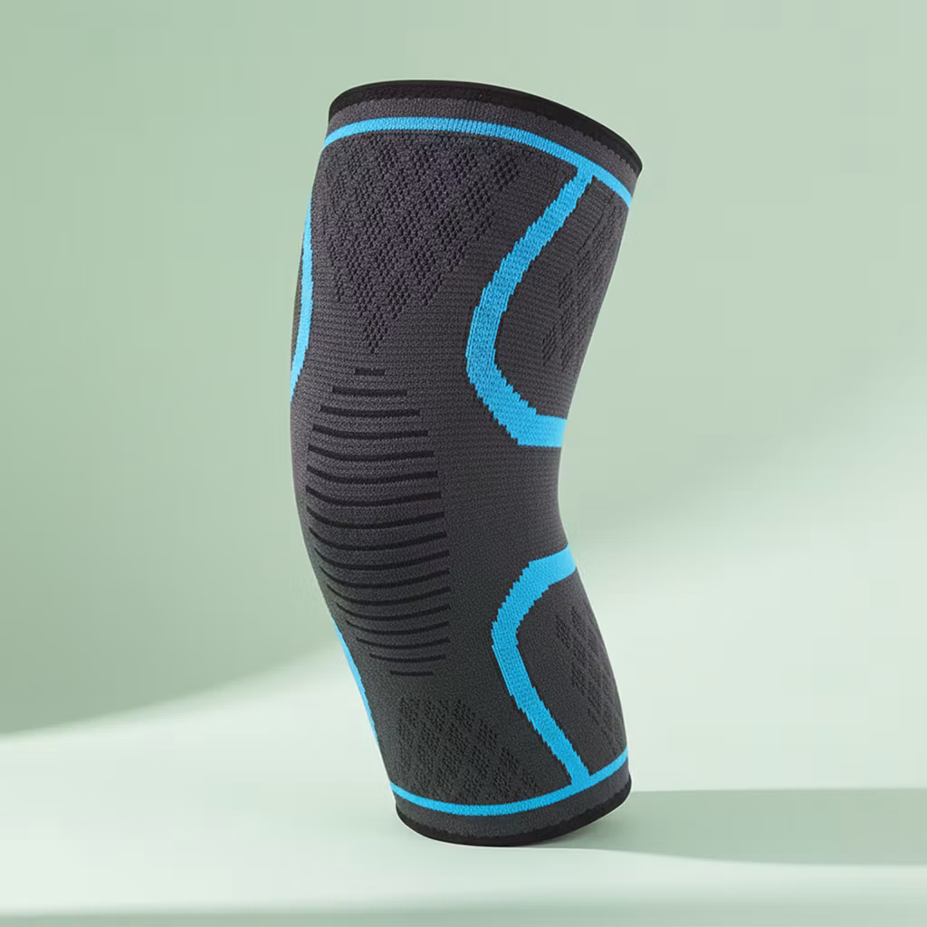 Knestøtte sport (blå) – elastisk knebeskyttelse som støtter knærne dine under sportsaktiviteter eller i hverdagen. Med denne knestøtten kan du nå nye høyder og maksimere prestasjonene dine! Vår knestøtte er laget av mykt og elastisk materiale som gir en god passform og optimal komfort.